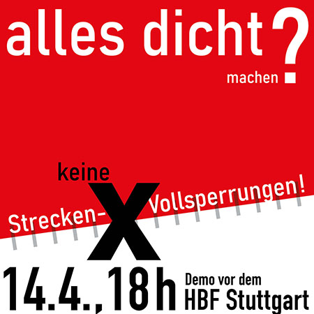die meisten von euch ahnen, was jetzt kommt: Immer, wenn ich zuletzt hier aufgekreuzt bin, ging es darum, für eine bevorstehende Kundgebung zu werben, für eine Aktion gegen die Rechtsextremen. So ist es auch heute. Und wenn jetzt wieder einige fragen, was denn das mit Stuttgart 21 zu tun hat, dann denkt bitte daran: Bei politischen Aktionen geht es fast immer gegen die Ungerechtigkeiten und Ungleichheiten in unserer Gesellschaft, fast immer um bessere Verhältnisse und Zustände. Das Immobilienprojekt Stuttgart 21, das von der herrschenden Politik und von Profiteuren der Wirtschaft durchgesetzt und durchgeprügelt wurde, macht da keine Ausnahme. Und alle, die sich politisch für eine bessere Demokratie engagieren, sollten erkennen, dass sie über thematische Grenzen hinweg zusammenarbeiten müssen. Nur mit solidarischem Bewusstsein und gemeinsamem Handeln haben wir eine Chance, etwas zu verändern, unsere Ziele durchzusetzen.
