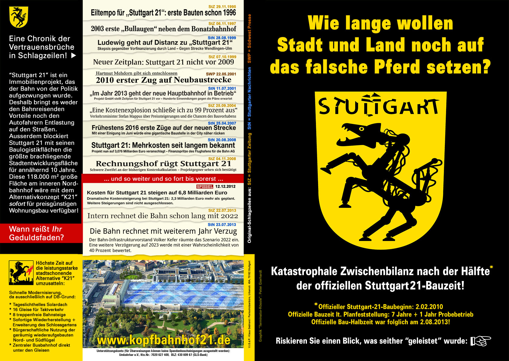 Neuer Flyer an der Mahnwache: Wie lange wollen Stadt und Land noch auf das falsche Pferd setzen?