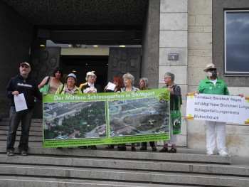 Anders dagegen am letzten Dienstag, 28. Juli. Zwar waren weder OB Kuhn noch der für die Anliegen der Parkschützer – Thema Bußgeldbescheide - in diesem Fall relevante Ansprechpartner Ordnungsbürgermeister Schairer in ihren Büros zugegen, doch wurde in beiden Fällen – im Büro Kuhn und im Büro Schairer - die Vorzimmertüren geöffnet und freundliche Mitarbeiter nahmen die Briefe in Empfang. Der Inhalt de Briefe wurde bereits als Offener Brief auf BAA publiziert Bußgeldbescheide