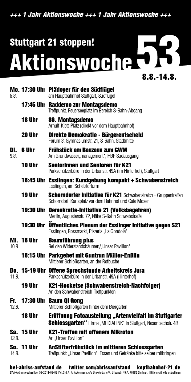 Aktion: "Mappus, stopp Stuttgart 21" am 1.9.